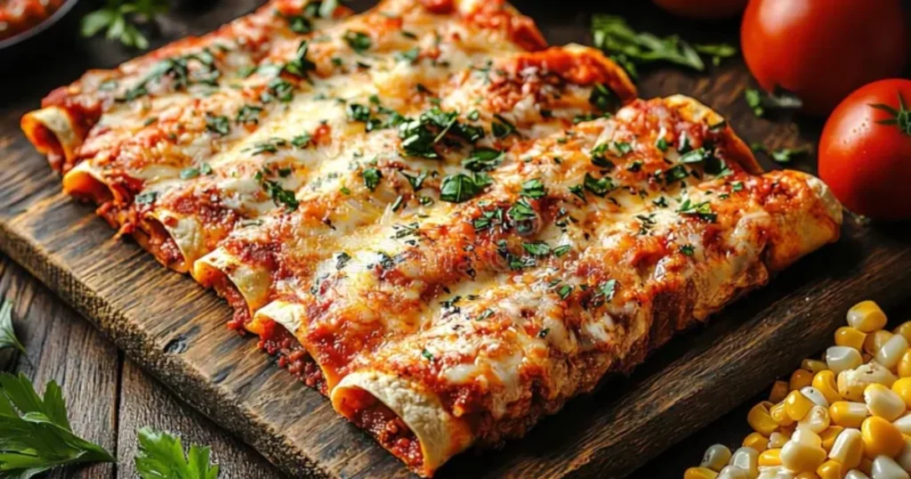 Si te encanta la pizza y las enchiladas, esta receta es tu sueño hecho realidad. Las pizza enchiladas combinan tortillas rellenas con carne sazonada, pepperoni, vegetales, quesos cremosos y salsa de pizza, todo horneado hasta quedar burbujeante. Es ideal para cenas en familia, noches de juego o para preparar con antelación. Además, si te gustan las recetas rápidas, echa un vistazo a nuestra receta de Pasta Instantánea o explora nuestra sección Cena con Carne Molida Fencial, perfecta para platos similares.