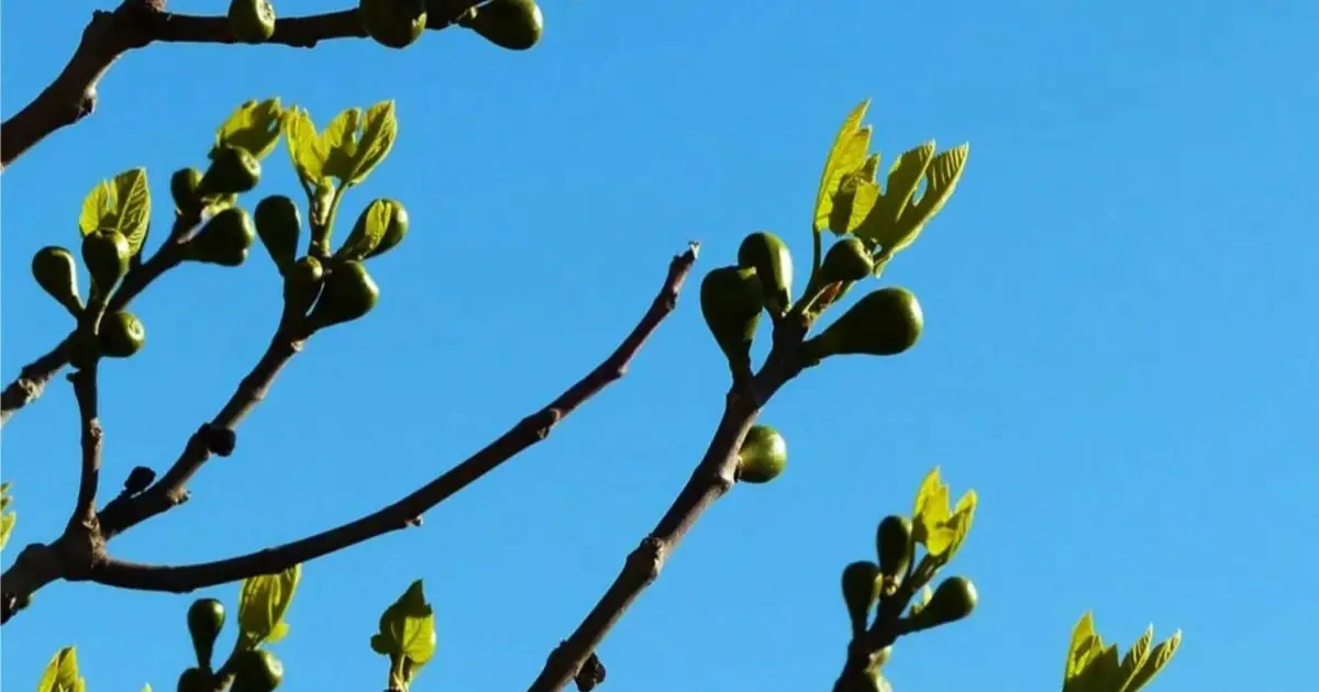 Una higuera bien cuidada muestra brotes vigorosos al inicio de la primavera.