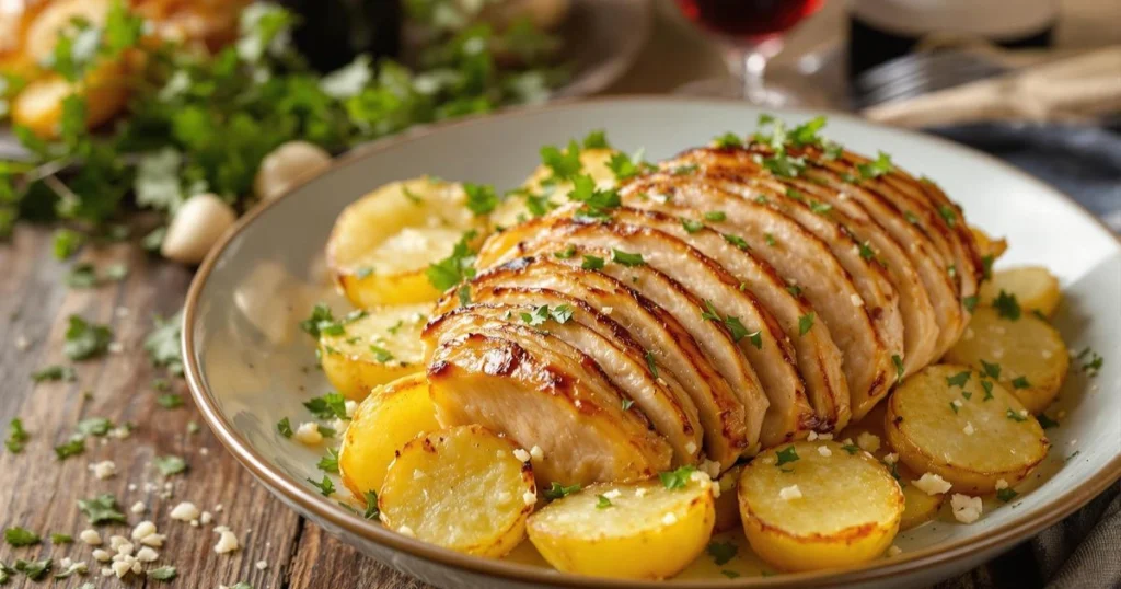 El pollo al horno con papas es un clásico que nunca pasa de moda. Su sencillez y su capacidad para reunir a toda la familia alrededor de la mesa lo convierten en una de las recetas más queridas de la cocina casera. Esta versión incluye una salsa de hierbas frescas que potencia los sabores naturales del pollo y de las papas, logrando un plato equilibrado, jugoso y lleno de aroma.