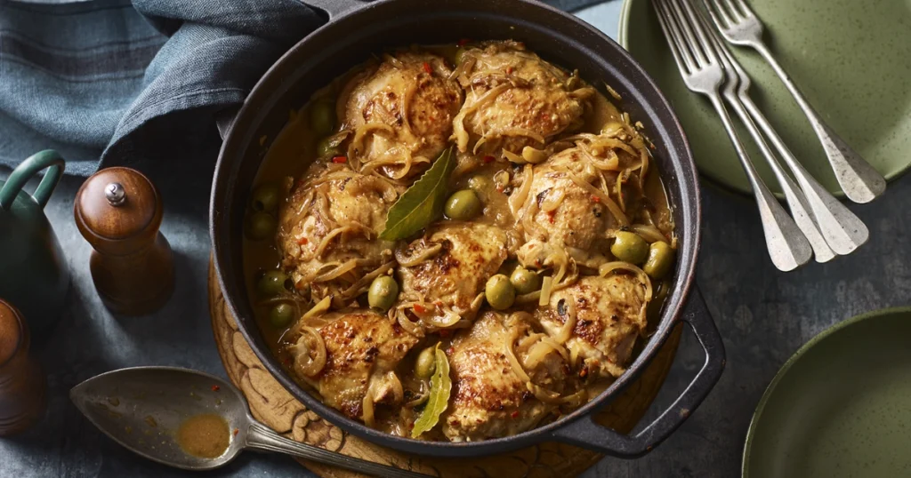 Pollo con cebollas caramelizadas y aceitunas: receta completa y guía práctica