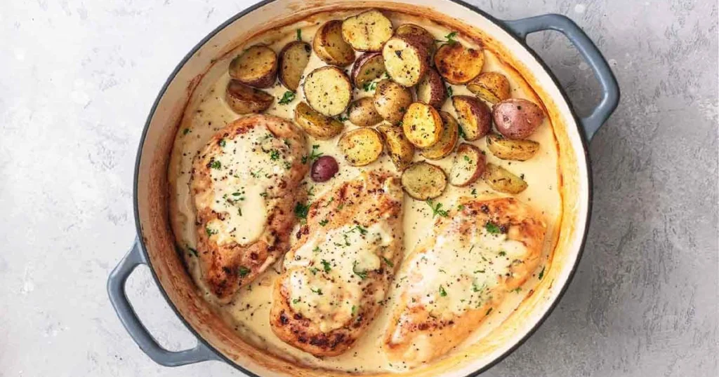 Pollo en salsa cremosa con papas al horno: receta completa y consejos