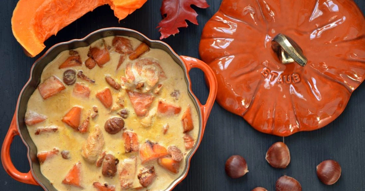 Pollo guisado con calabaza y castañas en salsa cremosa: receta tradicional y saludable