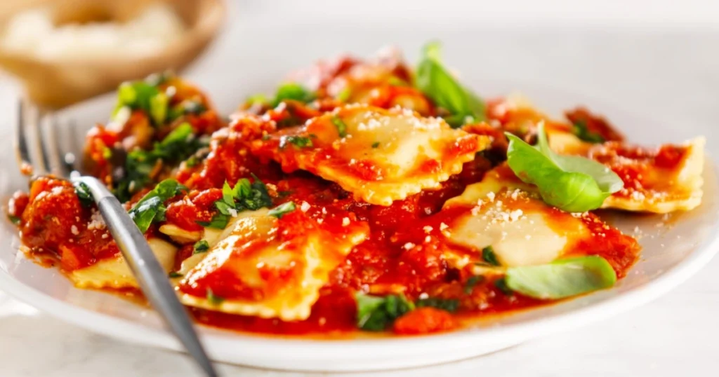 • Raviolis al horno: mezcla los raviolis con la salsa, cúbrelos con mozzarella rallada y gratina hasta que se doren.