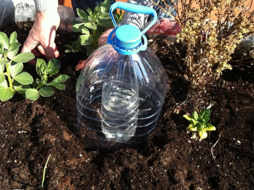 - 🧭 Coloca la parte inferior de la botella pequeña al sur de la planta (esto mejora la eficiencia solar).