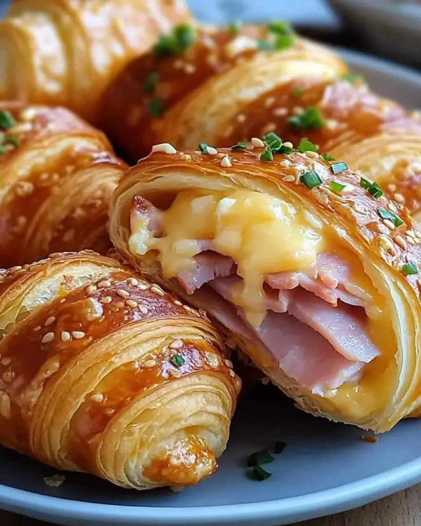 Rollitos de Croissant Rellenos de Jamón y Queso 🥐🧀 Un bocado cálido, crujiente y lleno de sabor