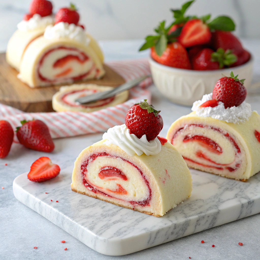 Rollos de Cheesecake de Fresa: ¡Deliciosos, Cremosos y Perfectos para un Postre Irresistible! 🍓🧀🍰