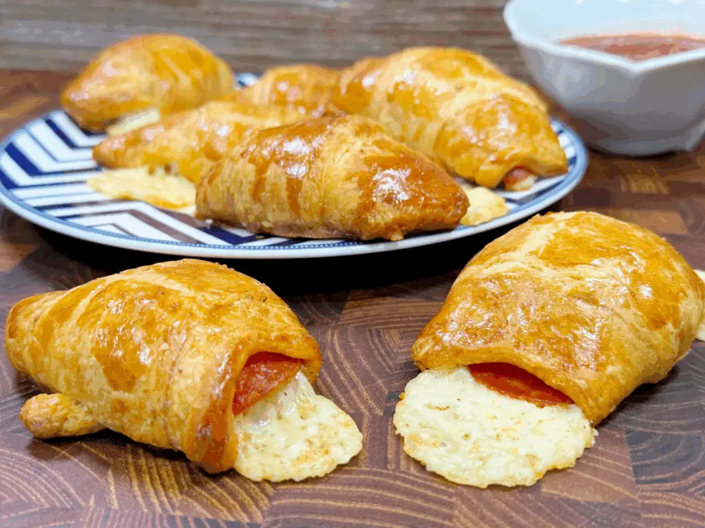 Los rollos de croissant con mozzarella y pepperoni son una receta sencilla pero increíblemente sabrosa. Perfectos para cualquier ocasión, ya sea como aperitivos para una fiesta o como una deliciosa merienda. Su mezcla de sabores y su textura esponjosa los convertirán en el centro de atención en tu próxima reunión.