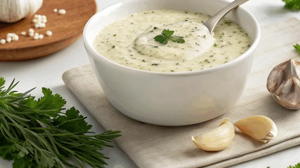 Salsa Cremosa de Ajo y Hierbas – ¡Perfecta para Untar, Acompañar o Dippear!