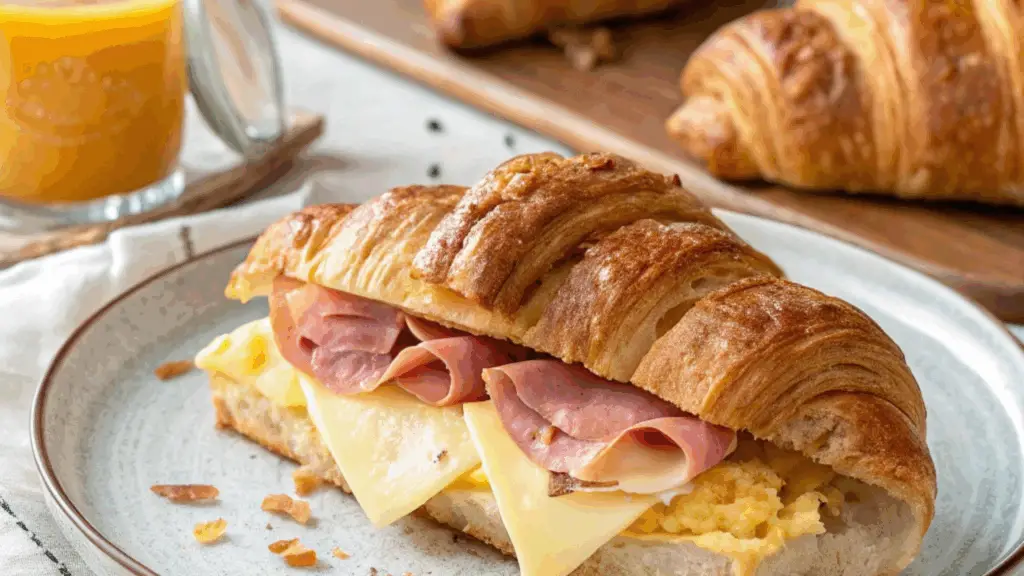 Sándwich de Croissant para Desayuno – ¡Delicioso, Esponjoso y Perfecto para Comenzar el Día!