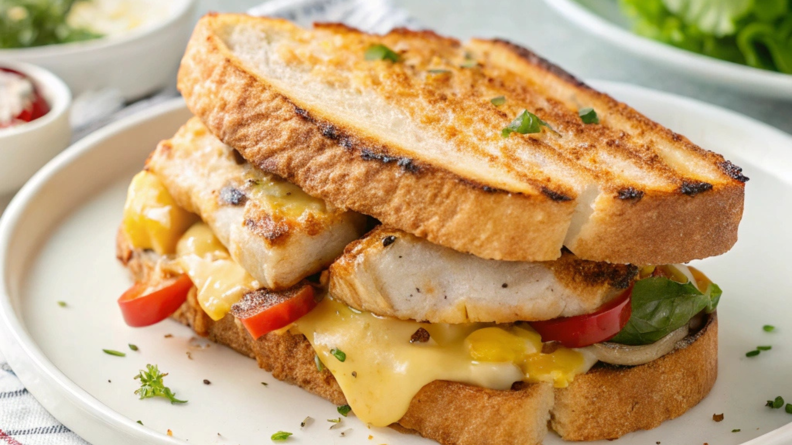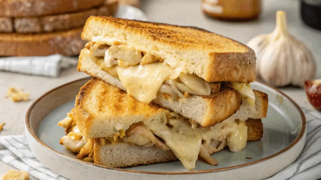 Sándwich de Pollo con Queso y Pan de Ajo – Jugoso, Sabroso y Perfecto para Cualquier Momento