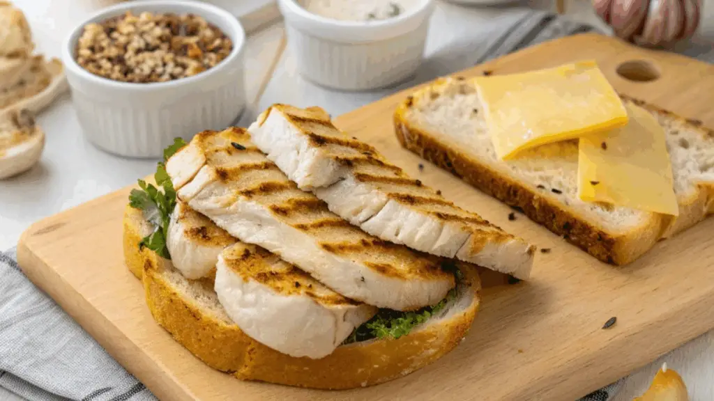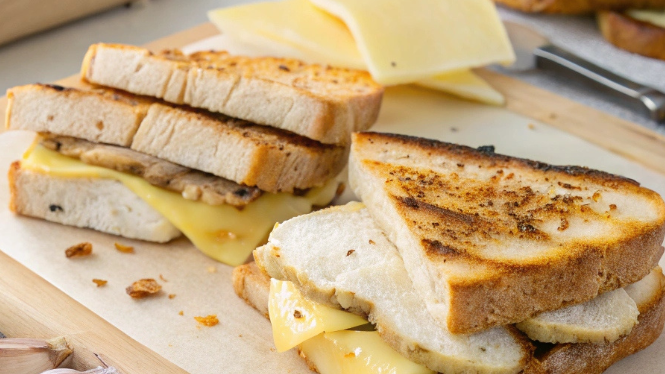 Sándwich de Pollo con Queso y Pan de Ajo: Un Bocado Sabroso y Reconfortante