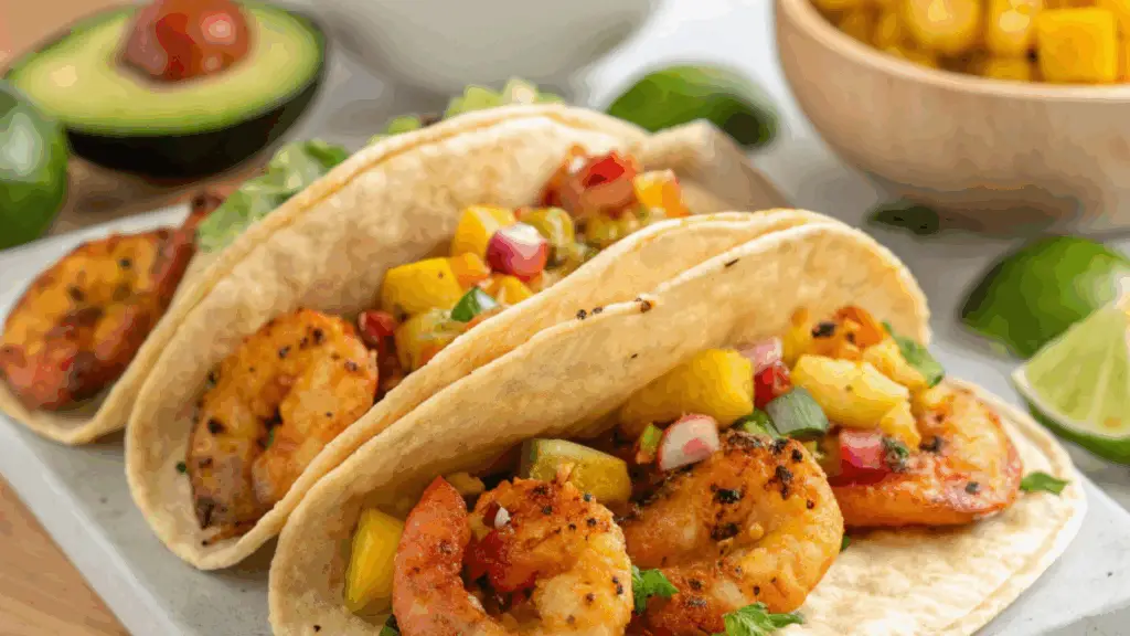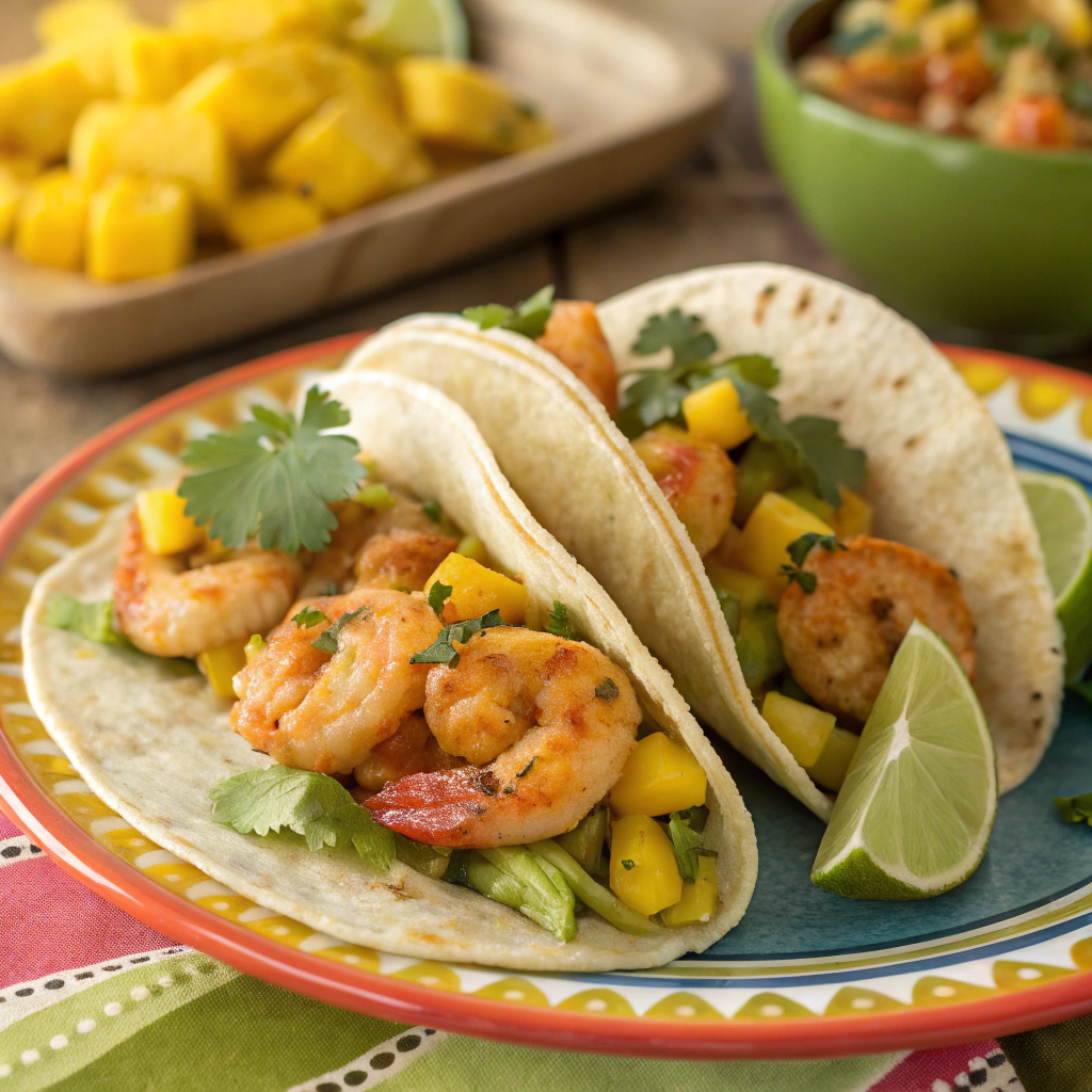 Tacos Picantes de Camarones con Salsa de Mango: ¡Un Sabor Exótico y Fresco en Cada Bocado! 🌮🦐🥭