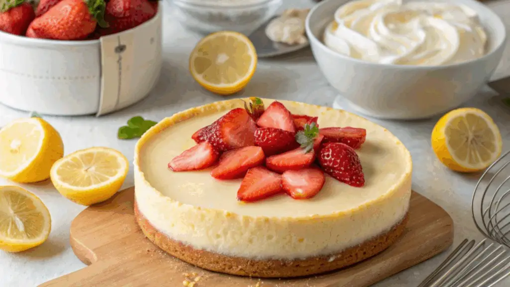 Tarta de Queso con Fresas y Limón – ¡Refrescante, Cremosa y Perfecta para el Verano!