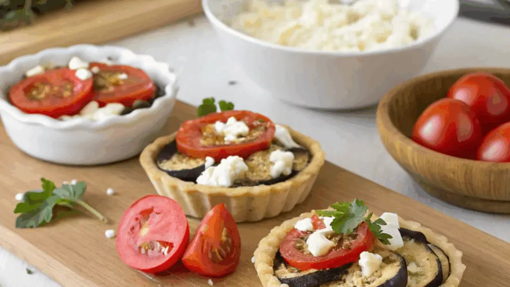 Tartaletas de Berenjena, Queso de Cabra y Tomate – Un Bocado Mediterráneo Lleno de Sabor