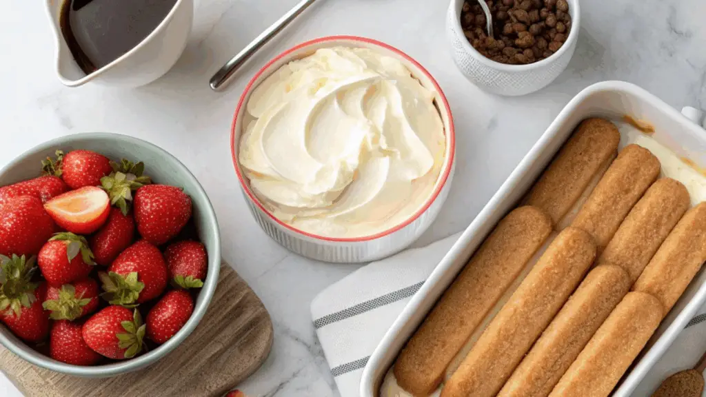 Ingredientes para el Tiramisú de Fresas con Mascarpone 🍓🍰