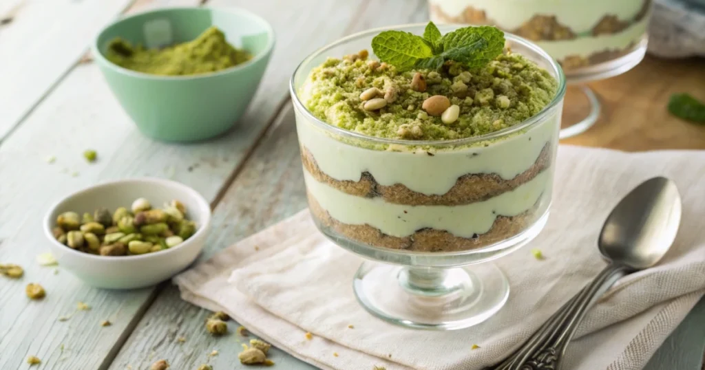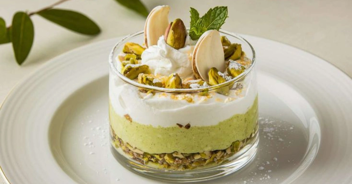 Vasitos de crema de pistacho y chocolate negro: un postre fácil y elegante
